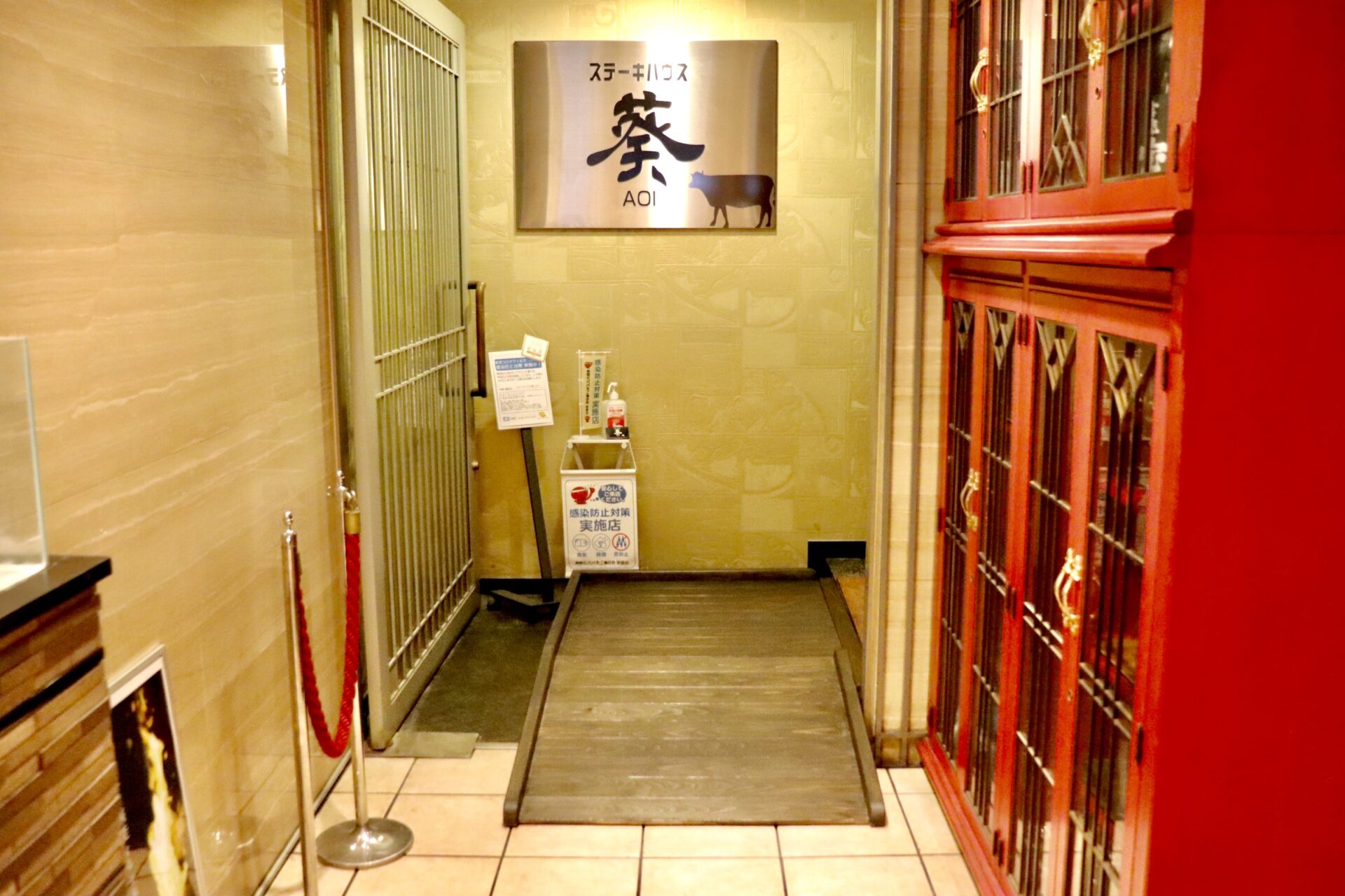 ステーキハウス葵では、ご利用のお客様にご不便をおかけしないよう店鋪入り口にバリアフリースロープを設置しました。